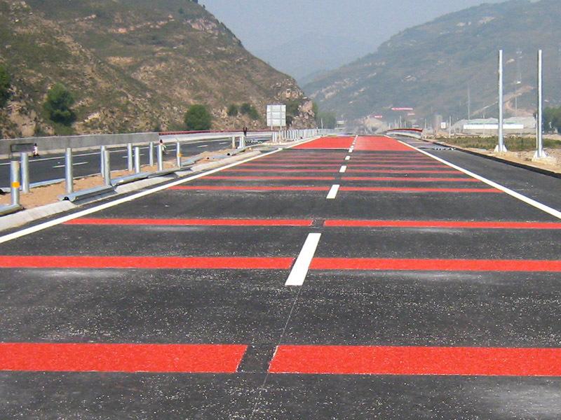 鋪筑不同色彩的路面在某種程度上比垂直的交通標(biāo)志更好,它可以直觀的給駕駛員以信號。例如,在交通事故多發(fā)地段,可以鋪筑紅色或黃色路面,直觀地提醒駕駛員謹(jǐn)慎行車。在通過中小學(xué)校區(qū)的道路上, 鋪筑鐵紅色路面, 使車輛減速慢行, 避免危險的發(fā)生。